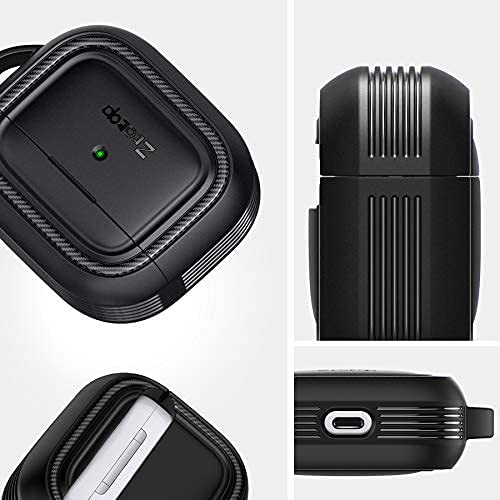 ZtotopCases Custodia per AirPods 3 2021, custodia rigida protettiva militare con moschettone, LED frontale visibile, supporto per ricarica wireless per AirPods di terza generazione, colore: nero