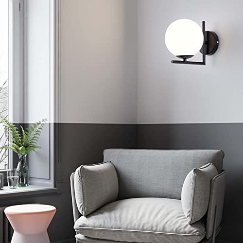 ZTTECH Applique da parete a sfera in vetro bianco, globo in vetro bianco con lampada da parete a base Nero per comodino (Nero)
