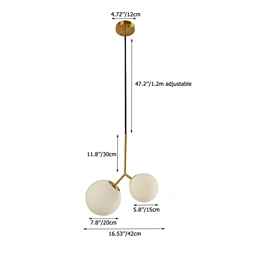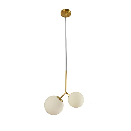 ZTTECH Lampada a sospensione globo a sfera in vetro bianco a 2 luci Lampada a sospensione in ottone con base dorata Lampada da soffitto per isola