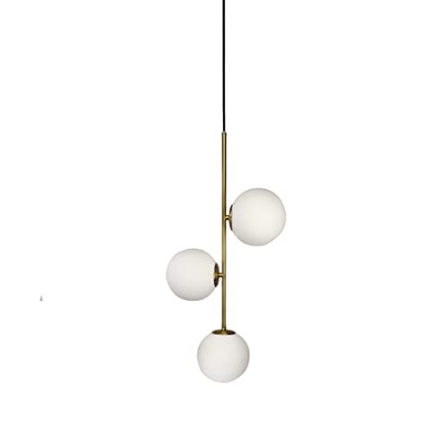 ZTTECH Lampada a sospensione in vetro bianco a globo a 3 luci, sfera di vetro bianca e lampada a sospensione in ottone dorato Matel Lampadario a soffitto (3 luci)