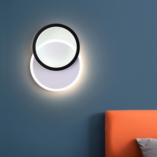 ZTWLEED 16W Applique da Parete Interno,Lampada da Parete LED Design Rotonda Bianca+Nera,Dimmerabile Tricolore Bianco Caldo-Bianco Naturale-Bianco Freddo,RA≥85,Applique per Camera Soggiorno Scala