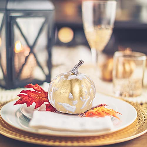 Set di Zucca Artificiale - 7 Pezzi Decorazione Zucca in Oro Bianco,Set di zucche in Schiuma di Simulazione per la Decorazione Autunnale di Halloween