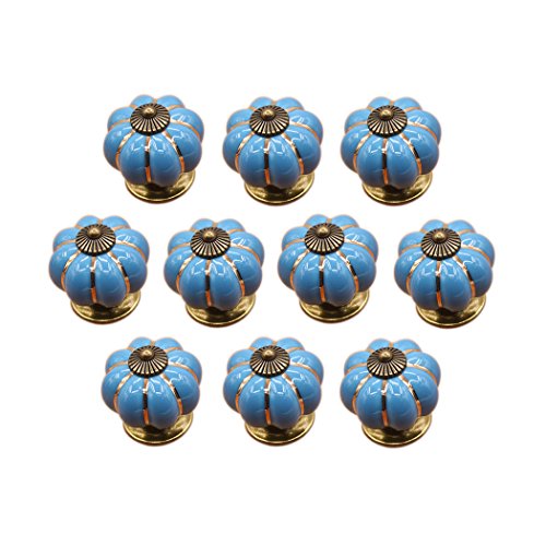 Zucca a Forma di Ceramica Pomello Della Porta Della Cucina Armadio Cassettone Armadio Maniglie 10 Pack, Blu