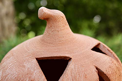 Zucca di Halloween "Mignon" Lanterna Terracotta (14cm) 100% made in Italy lavorato a mano al tornio (non a stampo) Porta candele interno casa esterno giardino
