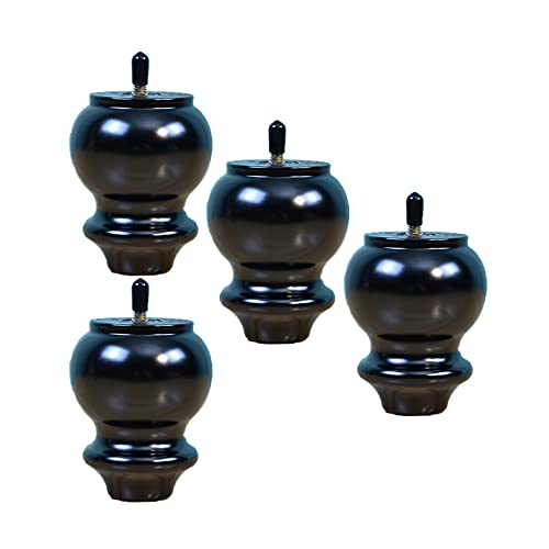 Tipo Zucca Piedini per Mobili in Legno Gambe per Mobili Cabinet Piedi del Divano Tavolo Letto Armadio Armadietto Guardaroba M10 Bullone,Nero 4 Pezzi (10cm)
