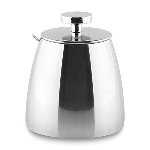 Café Ole, zuccheriera in Acciaio Inox con cucchiaino e Coperchio, Acciaio Inossidabile, Mirror Finish, 11.5 x 10 x 10 cm
