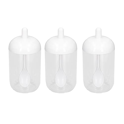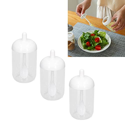 Zuccheriera in plastica da 3 pezzi con set di coperchi per cucchiai, barattolo per contenitori per sale con cucchiaio e coperchio Barattoli per spezie trasparenti da cucina per bancone domestico