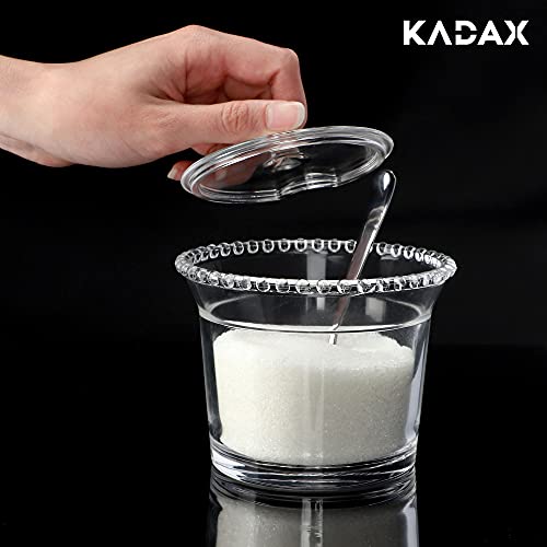 Molti di noi non possono immaginare la vita senza di lui. Tuttavia, lo zucchero richiede una presentazione elegante, specialmente in festival e celebrazioni. Dai un'occhiata più da vicino al nostro marchio Kadax - si distingue, vero? La forma elegante, il vetro di alta qualità e le proprietà pratiche formano un accessorio utile e decorativo. Inserisci con i tuoi conoscenti e porta sul tavolo la lattina di zucchero!