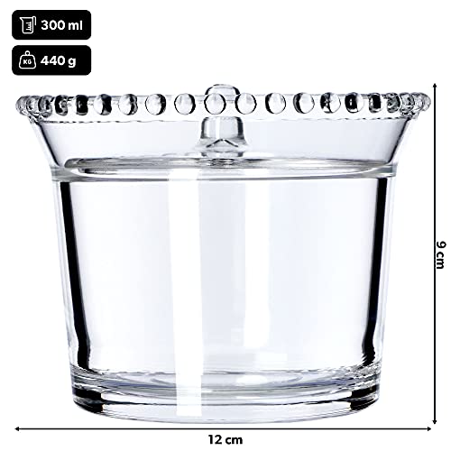 ADAX Zuccheriera in vetro, contenitore per spezie con coperchio ergonomico, contenitore in vetro trasparente per zucchero, portaspezie con base rinforzata (rotondo, con sfere)
