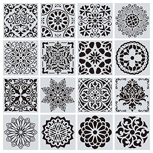 Zueyen 16 Pezzi Stencil Mandala Riutilizzabili per Pittura Stencil per aerografo, mobili, piastrelle, muri, Tela, Carta, arte e pittura su pietra Pavimento, 6 x 6 Pollici/ 15 x 15 cm (Speciale)