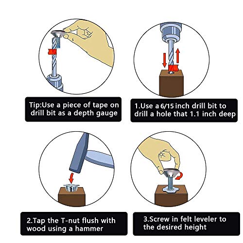 【Facile da installare】 Praticare un foro da 5/16 "" in ogni angolo, inserire i dadi a T e avvitare il livellatore all'altezza desiderata.La dimensione: M6 x 25,4 x 25 mm (diametro filettatura * lunghezza filettatura * diametro base);