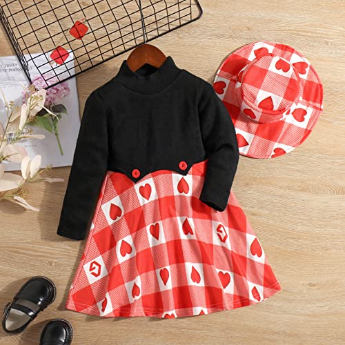 Design: vestito di San Valentino per ragazzine, 1/2 pezzi, vestito da principessa con tulle, maniche lunghe, stampati cuore d'amore, abbinato fascia o cappello, renderà la tua principessa più dolce e adorabile, le piacerà molto.