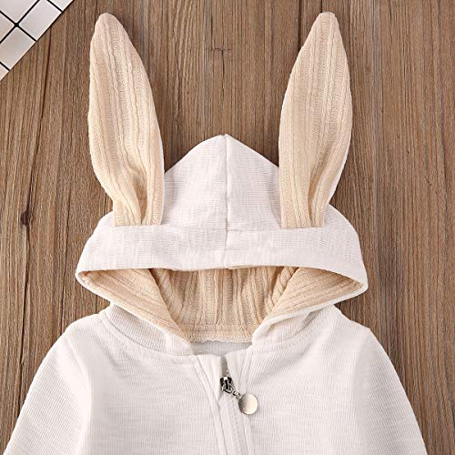 Zukmuk Body Tutine Neonato 0-24 Mesi Pagliaccetto con Cappuccio Orecchio di Coniglio Completini Maniche Lunghe Onesies Pigiama Bambini Unisex (Bianco, 0-6 Mesi, 59)
