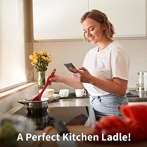 Zulay Mestolo da Zuppa con Comoda Impugnatura - Cucchiaio da Cucina e da Servizio per Zuppe, Chili, Sughi, Condimenti per Insalate e Pancake - Mestolo Grande in Nylon e Mestolo da Zuppa - Rosso
