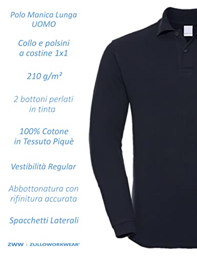 ZULLO WORKWEAR Polo Uomo Manica Lunga Blu Navy da Lavoro Personalizzata con Nome o Testo (M, Blu Navy)
