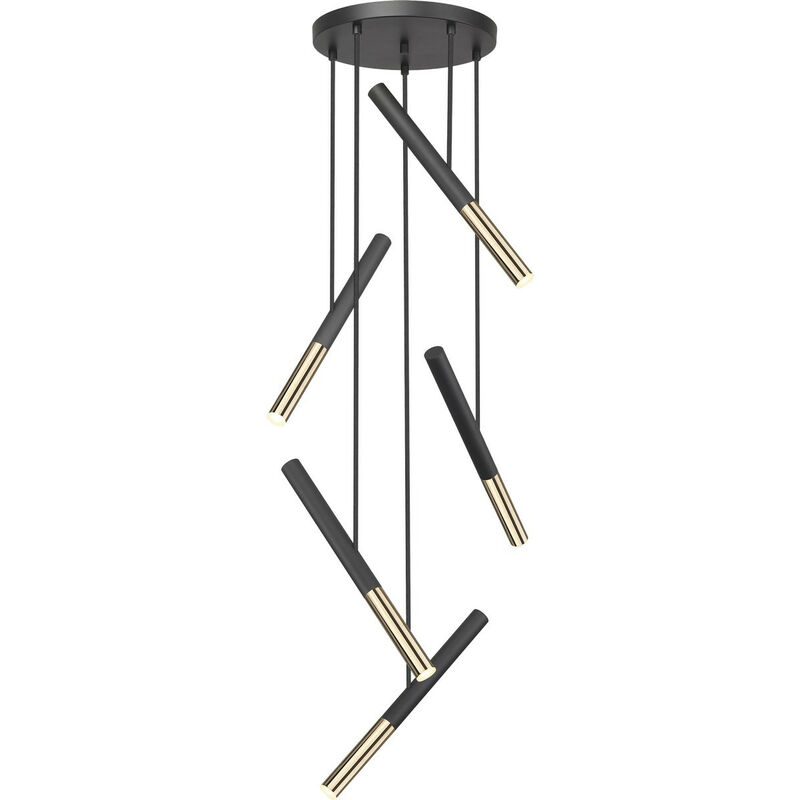 Zumaline LOYALAMPA Plafoniera LED integrata a sospensione a grappolo, nero opaco, oro francese, 3000K, 2250Lm | Finitura: nero opaco, oro francese | Materiale: metallo | Classificazione IP: IP20 | Altezza: 141cm | Lunghezza: 43 cm | Larghezza: 43 cm | Tipo di lampada: LED integrato | N. di lampade: 5 | Kelvin: 3000 K | Lumen: 2250lm | Peso (kg