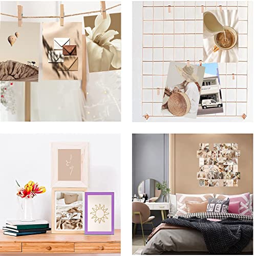 ZUMLLOMA Set di 50 Poster Collage da Parete,Decorazioni Camera da Letto Cartolina di Natale per Pareti Estetiche Kit Collage Stampe, Decorazioni per Pareti della Stanza, Dormitorio, Soggiorno (Beige)