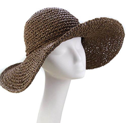ZUMUii Butterme Adatti a signore paglia di estate Visiera grande bordo largo Floppy Fold Nuoto in mare Cappello di paglia (Marrone)