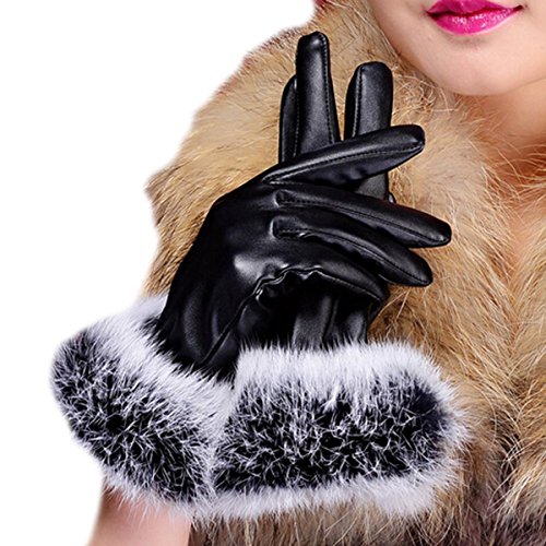 ZUMUii Butterme delle Donne Caldo della Pelliccia del Coniglio Foderato Guanti in Pelle Texting Guanti dello Schermo di Tocco Inverno riscalda i Guanti Mittens (Nero)