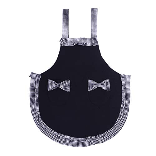 ZUMUii Butterme Sveglio Grembiuli Bowknot Cotone per Le Donne Che Cucina Ristorante di Lavoro della Cucina Giardinaggio Casa Patterns Grembiule con Tasche Griglia Bowknot e Increspature (Nero)