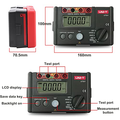 Zunate 50Hz/60Hz Misuratore di Resistenza,Tester di Resistenza di Terra,Misuratore di Resistenza di Isolamento Tester,Supporto Conservazione dei Dati,Retroilluminazione,Indicazione di Fuori Campo