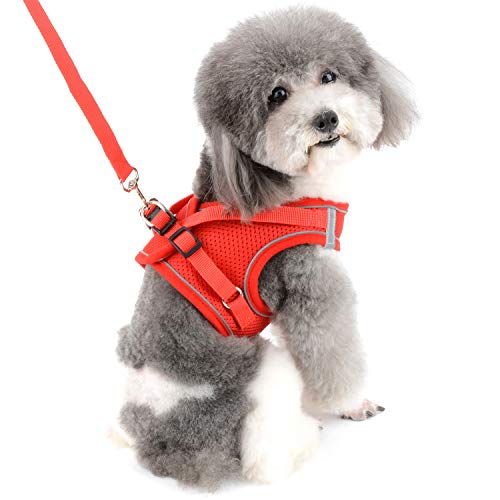 Zunea Pettorina per Cani Piccola Taglia Imbracatura e Guinzaglio Regolabile Riflettente per Cucciolo Gatti in Morbida Rete Antifuga Non Tira Pettorina, Colori Vivaci per Cane Femmina Maschio Rosso S