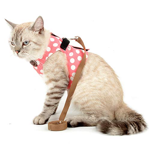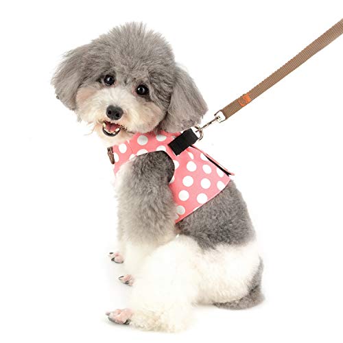 Zunea Pettorina Cane Taglia Piccola Antifuga Gatto Imbracatura con Fiocco, a Pois Pettorina e guinzaglio per Cucciolo Chihuahua Cani Gattini, Facile da Indossare, per Adestramento Corsa Rosa L
