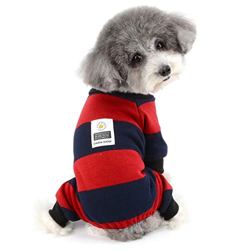ZUNEA Pigiama per Cani Piccola Taglia Invernale Cappottino con 4 Zampe Caldo Maglione Vestiti Abbigliamento in Cotone a Righe Gatti Cucciolo Abiti per Animali Domestici Chihuahua Rosso XXL