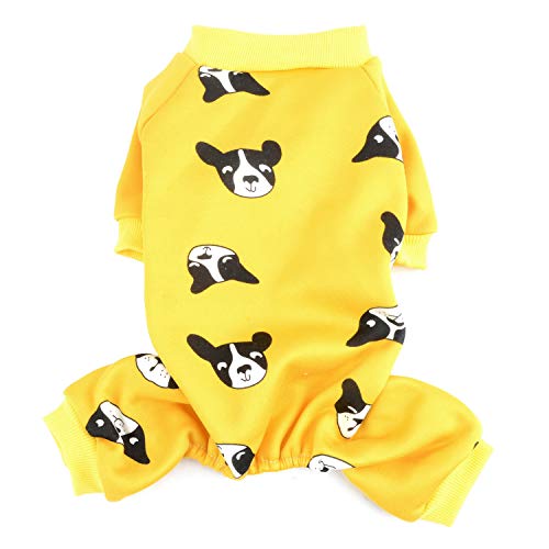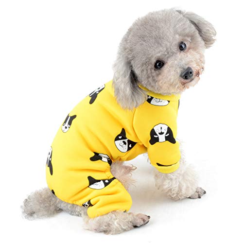 Zunea - Pigiama per cani di piccola taglia, in morbido cotone, con gambe invernali, calde, per gatti, adorabili sorrisi, stampati, cuccioli, pigiama, taglia S, colore: Giallo