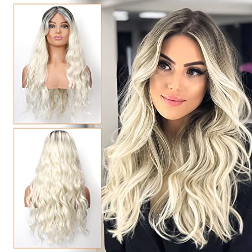 ZUNSEAT Parrucca da donna,oro Bianco Sfumato Capelli Lunga Ricci con Frangia