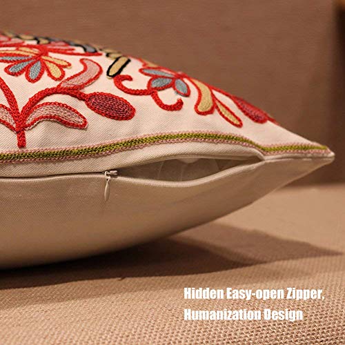 ZUODU - Federa decorativa per cuscino, in cotone e lino, ricamata, 45 x 45 cm - L'albero della vita (rosso con cornice), Cotone Lino, Bird Cushion, 45 x 45 Centimeters