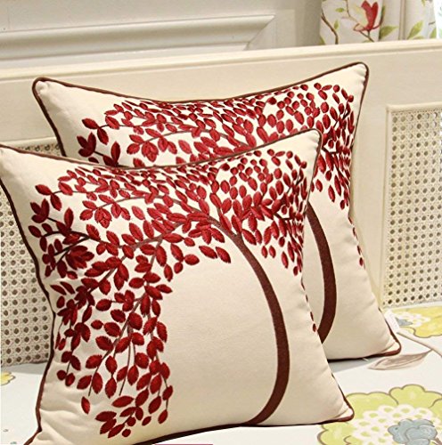 ZUODU - Federa decorativa per cuscino, in cotone e lino, ricamata, 45 x 45 cm - L'albero della vita (rosso con cornice), Cotone/cotone misto/lino, Lt-red-2pc, 45 x 45 Centimeters