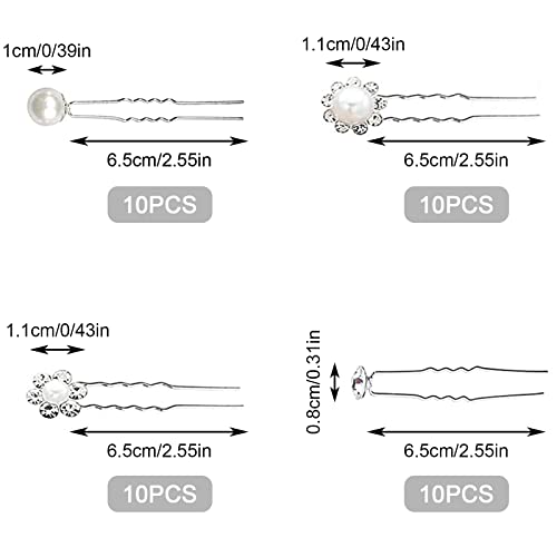 ZUOMENDY18, 40pcs Perni per capelli con strass a forma di U, Forcine di perle, per capelli con perle da sposa Fermagli per capelli in cristallo perle Perni per capelli