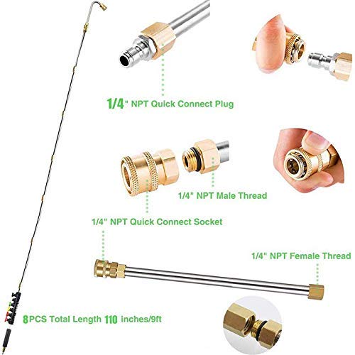 [Utensili per la pulizia della grondaia] Le prese femmina NPT da 1/4 invh sono collegate a questi strumenti di pulizia a pressione. Un raccordo ad anodo NPT da 1/4" è collegato alla idropulitrice . Facile da usare, installare e rimuovere.