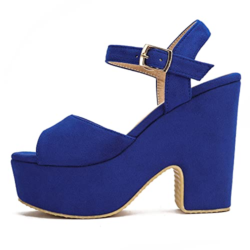 ZureoZaore Donna Tacco Sandali Platform Serata Scarpe Punta Aperta Vestito Sandali Cinturino alla Caviglia Estate Sandali Suede Fibbia Blue Dimensione 34 Asiatico