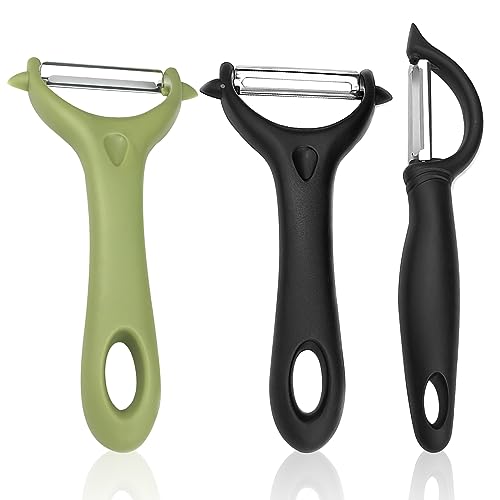 Zuroki 3 Pezzi Pelapatate Universale, Pela Verdure, Sbucciatore Manuale,Pelapatate Girevole,Verdura Pelapatate in Acciaio Inox Pelapatate da Cucina per Verdure Frutta,manico antiscivolo(Nero, Verde)