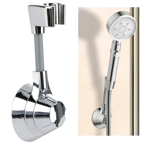 Zuroki supporto per soffione doccia senza fori,Supporto per soffione doccia senza foratura, girevole a 360°, supporto per doccia regolabile senza foratura