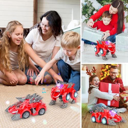 Zusentee Dinosauri Giocattoli Macchina Dinosauro Trasformabile Automatica Trasformer Dinosauro Macchina con Luci e Musica giochi bambini 2 anni Giocattoli Transformer Car LED con Luci e Musica, Rosso