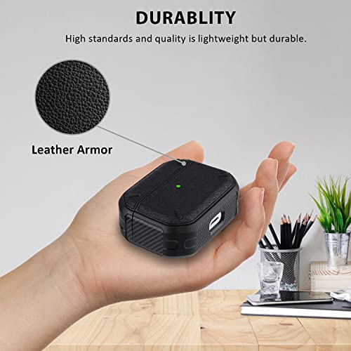 Zuslab Case Compatibile Con Apple Airpods 3rd Generation 2021, Protettiva Cover in Pelle Resistente Agli Urti a Doppio Strato con Ricarica Wireless e Portachiavi, LED Anteriore Visibile, Nero Opaco