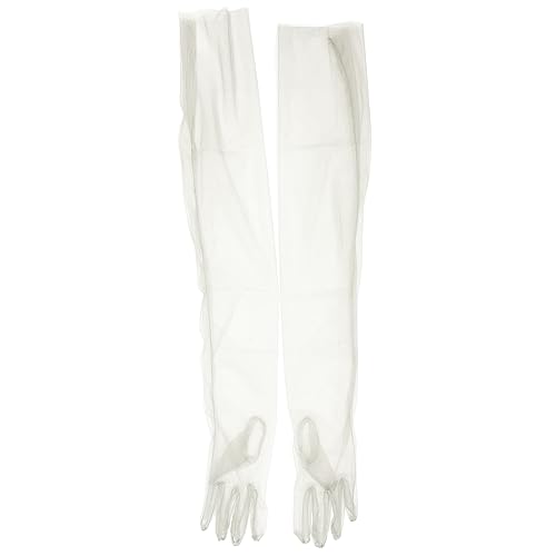 ZUYPSK Guanti lunghi da sposa a dita intere da sposa, in tulle trasparente, per feste, cocktail, grigio., Taglia unica