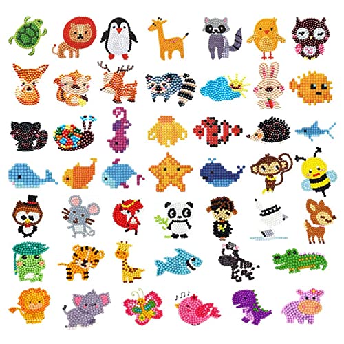 Zuzer 47 Pezzi Diamond Painting Bambini 5D Pittura Diamante Adesivo,Kit Pittura Diamante 5D Bambini Diamond Painting Stickers per Bambini Principianti Adulti