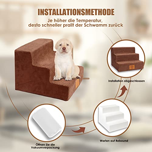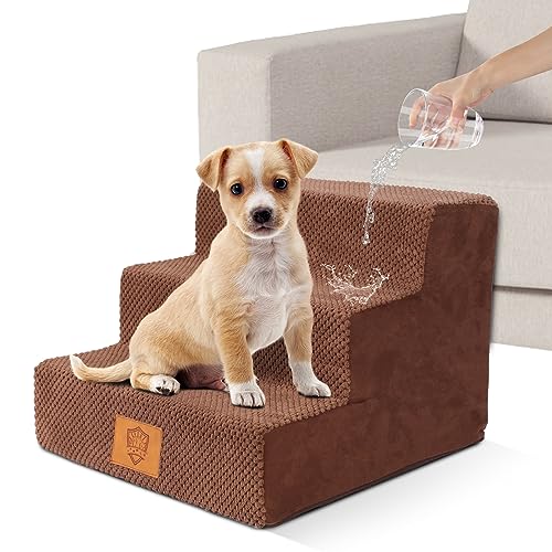 Zvonema Scala per Cani Impermeabile, Rampa per Animali in Schiuma a 3 Livelli, Scaletta per Gatti di Piccola Taglia Domestici Rimovibile Lavabile, Letto, Divano, Giochi per Animali Gratuiti