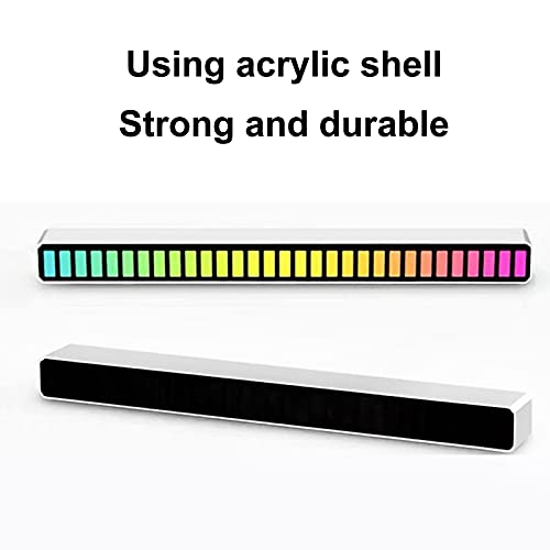 Zwbfu RGB Barre luminose a LED intelligenti Controllo del suono dell'auto Rhythm Light RGB, per luci d'atmosfera musicale ad attivazione vocale con 32 LED 18 colori Batteria incorporata a 32 bit White