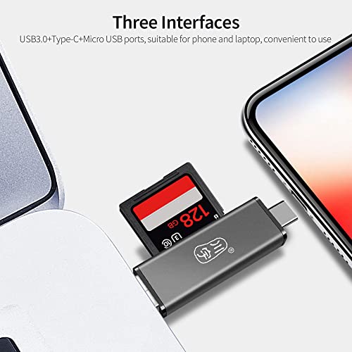 Zwbfu Lettore di schede portatile C350D USB3.1, lettore di schede multifunzione di tipo C + USB + Micro USB + slot SD/TF doppio per computer portatile con custodia