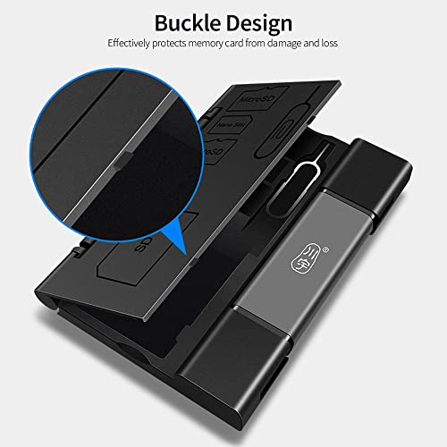 Custodia e lettore di schede 2 in 1, può contenere 2 schede TF, 1 scheda SD, 1 scheda Nano SIM e 1 ago per carte, non dovrete preoccuparvi di perdere le carte.