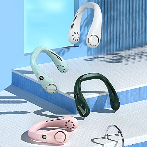 Zwbfu Ventilatore Portatile, ricaricabile senza lama da appendere al collo Schermo a LED digitale a LED con uscita del vento a 360° regolabile a 3 marce Bianco
