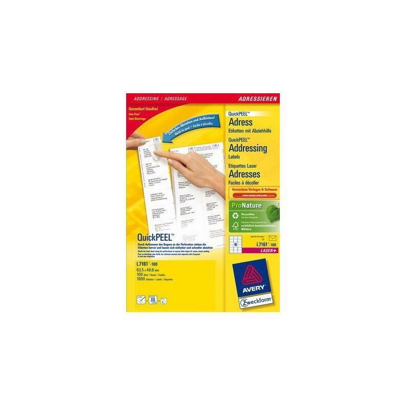 Hai sono due mani, ma dozzine di cose da fare. E devi inviare quel mailing oggi entro le 17! Come fare? Utilizza le etichette per indirizzi, realizzate con la tecnologia Avery QuickPeel - Queste etichette per indirizzi sono più facili da rimuovere ed applicare grazie alla tecnologia Avery QuickPEEL™. - Ideali per buste formato C6, 18 etichette per foglio. - La tecnologia Jam Free™ offre un'elevata qualità di stampa. - Etichette certificate FSC, la carta proviene da foreste gestite in modo responsabile. - Ecologiche, possono essere riciclate come la carta comune. Descrizione Prodotto: - 63,5 x 46,6 mm. - Laser / Inkjet / Laser a colori. - 100 fogli per confezione. - Bianco. - Utilizzo: Indirizzi. - 1800 etichette per confezione. - 18 etichette per foglio. - Stampa: Buste formato C6. - Adesivo permanente. - Rettangolare. - A4. - Ecologiche. - Carta. - Tecnologia QuickPEEL™. Etichette da pacchi 1800 pezzo(i) Fogli per pacco 100 fogli Colore del prodotto Bianco Materiali Carta Dimensione