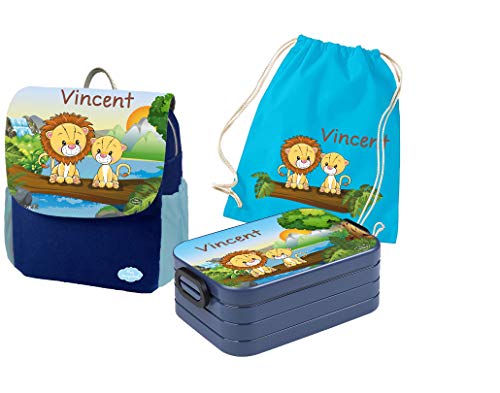Mein Zwergenland SET 4 ASILO CON portapranzo e Sacca sportiva HAPPY Knirps PROSSIMO stampa con nome blu - LEONI, Rucksack einzeln