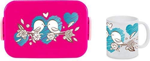 Mein Zwergenland Portapranzo Mepal Take a Break Grande Big Scatola & Tazza Fucsia Motivo Vogelpärchen