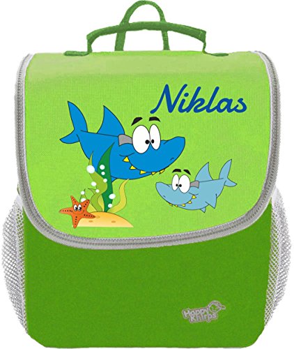 Mein Zwergenland Set 2 Zaino per L' Asilo e Sacca di Cotone Happy Knirps Prossimo con Nome Verde - Fische, SET 2: Rucksack, Turnbeutel